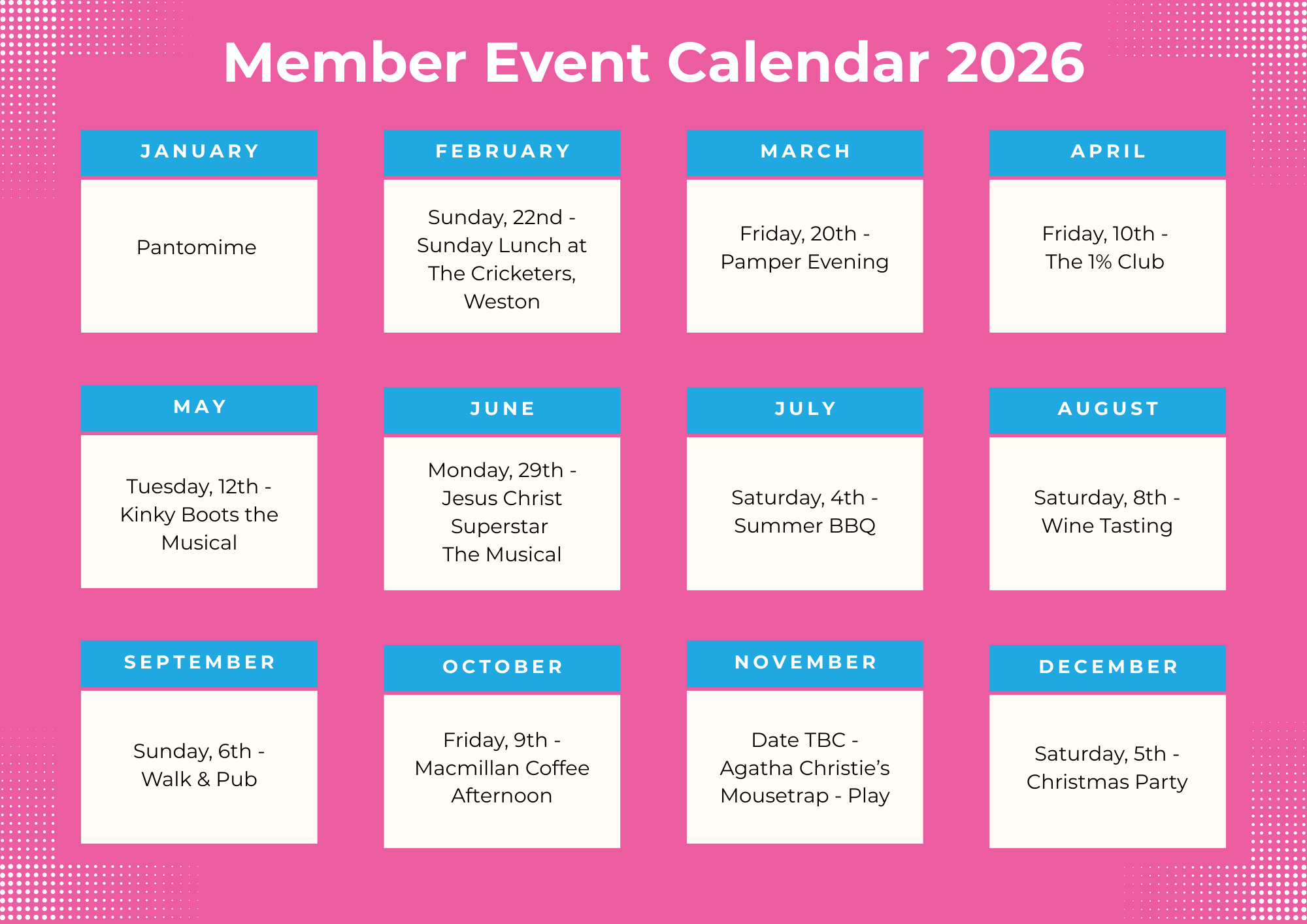 Dianne via [email protected] For any event queries or bookings.